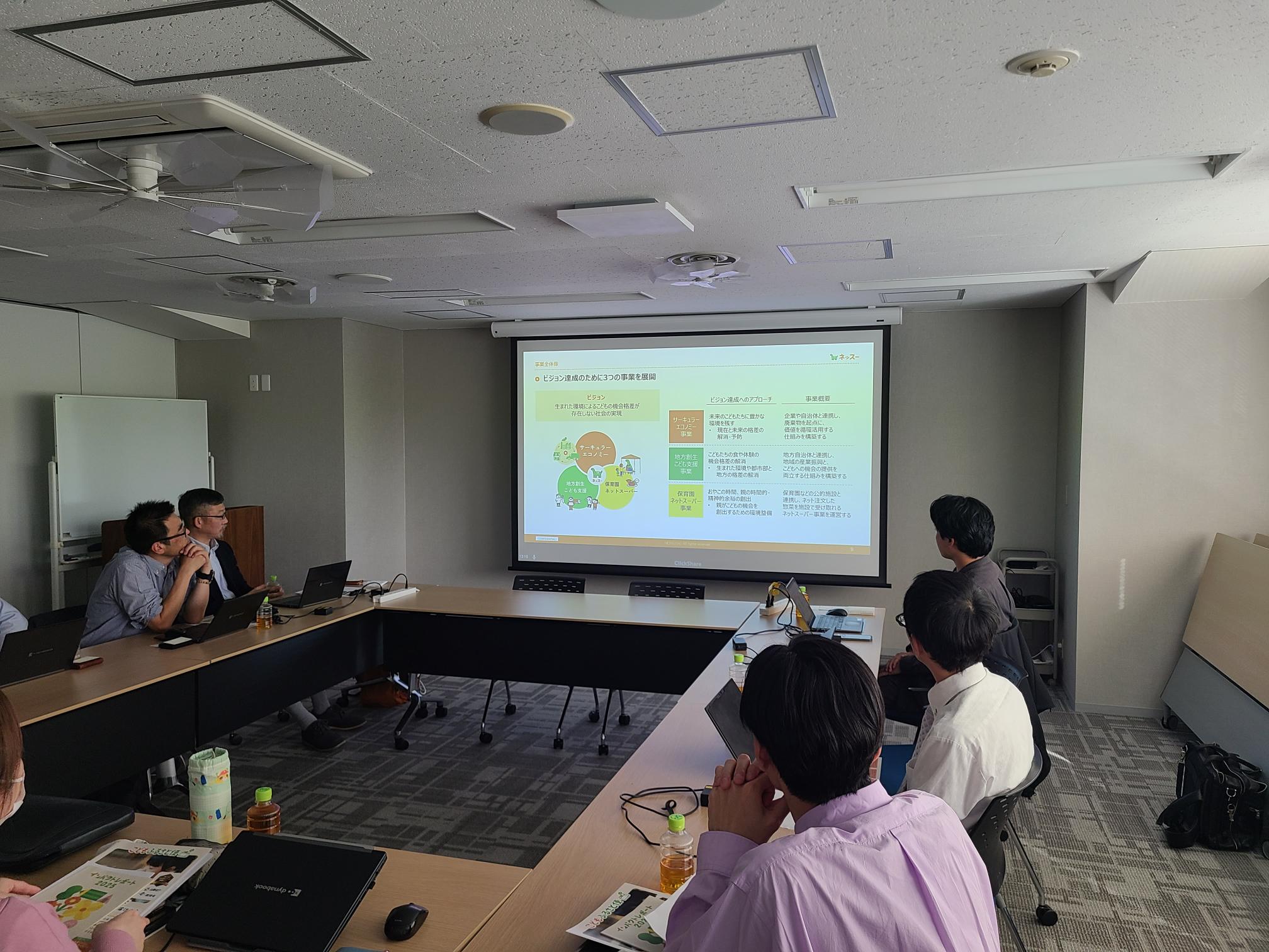 視察では、スーパーでの商品登録や冷蔵庫への商品格納等の運用確認や、ステナスのサービスを登録している子ども食堂の見学等を行い、サービスの一連の流れを学びました。