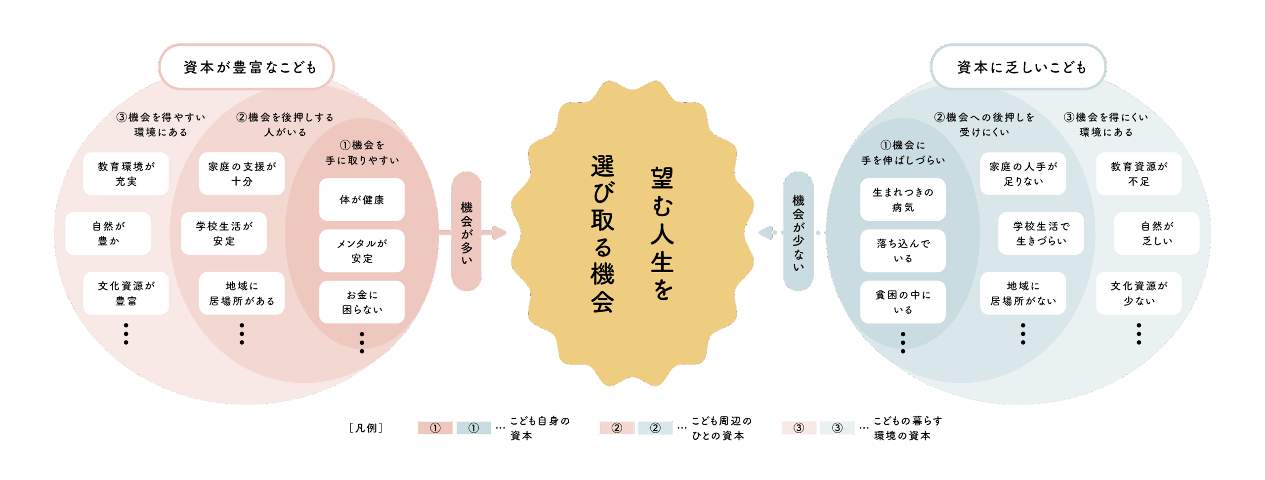 もっている資本のちがいにより、 こどもたち一人ひとりの 「望む人生を選び取る機会」に差があること